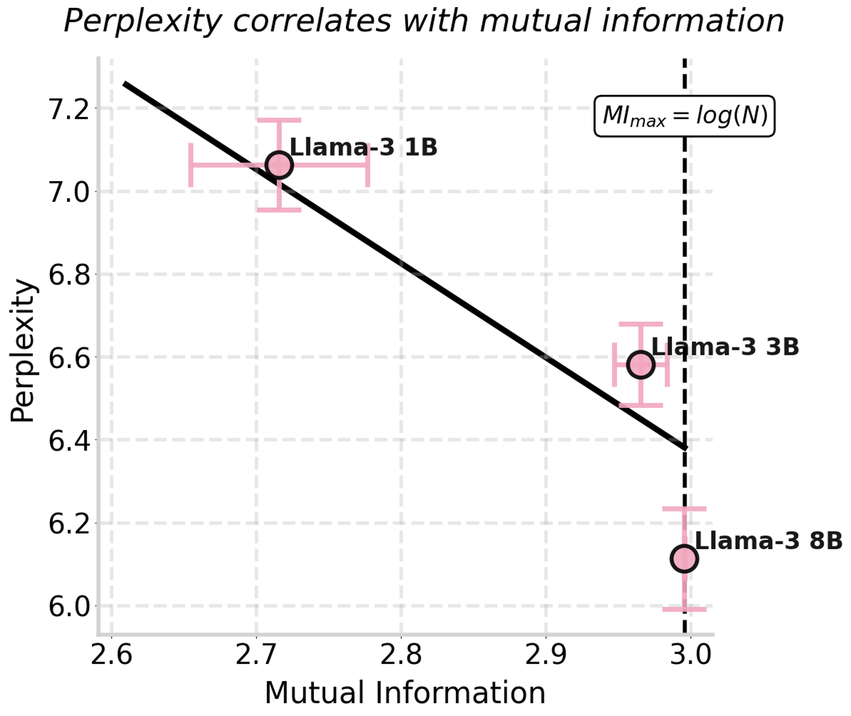 Our experiments confirm this hypothesis—mutual information correlates with both downstream accuracy (after sampling) and perplexity. It is an indicator for system performance that can be measured without actually running the prediction step.